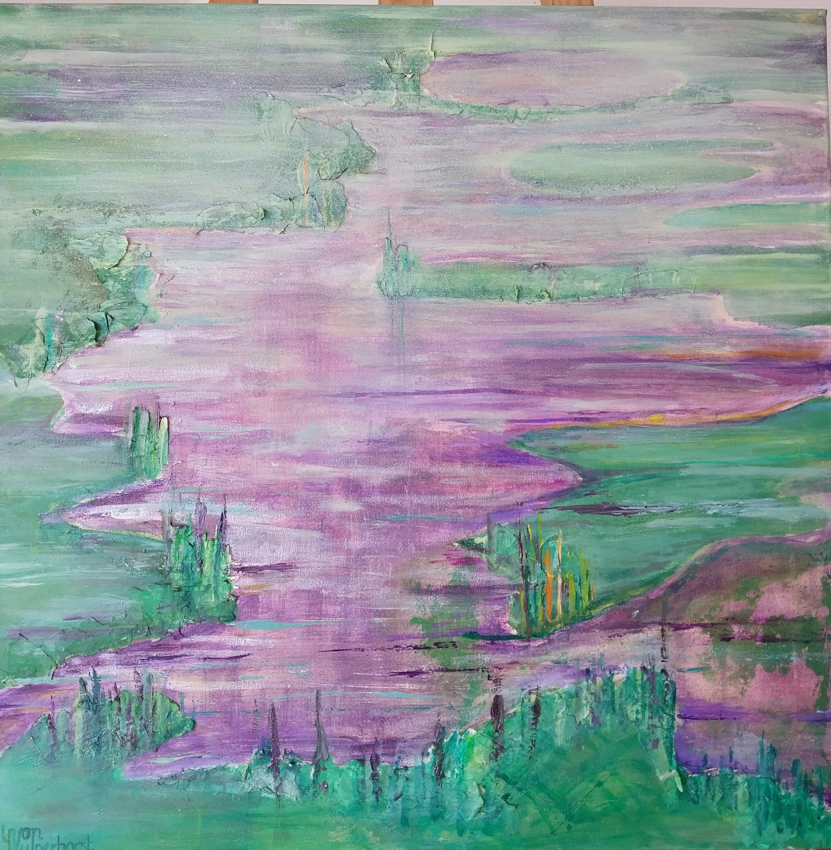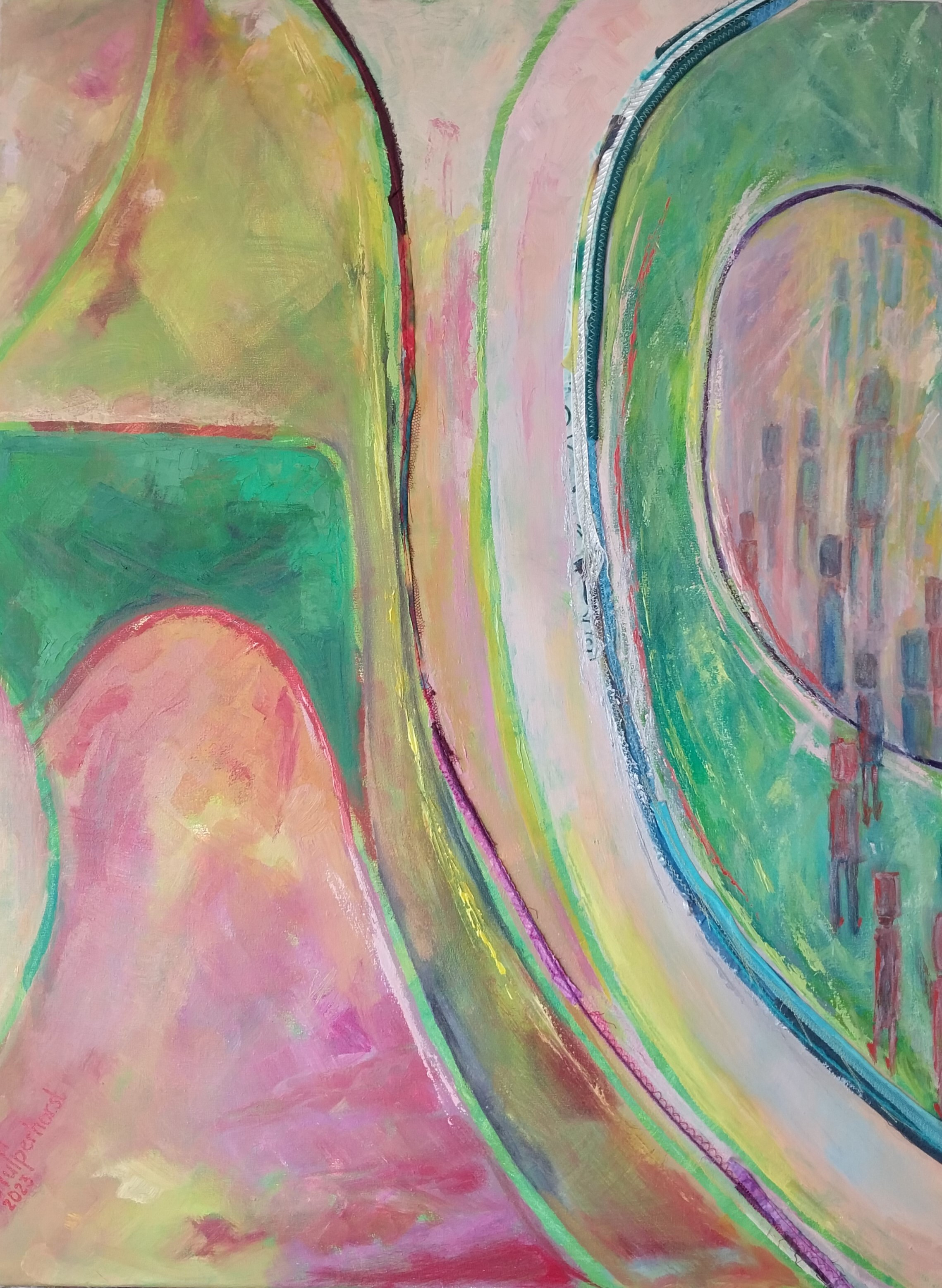EEUWIG 3 60X80 CM gem techn acryl-en olieverf, textiel, water-soluble-fabric op doek