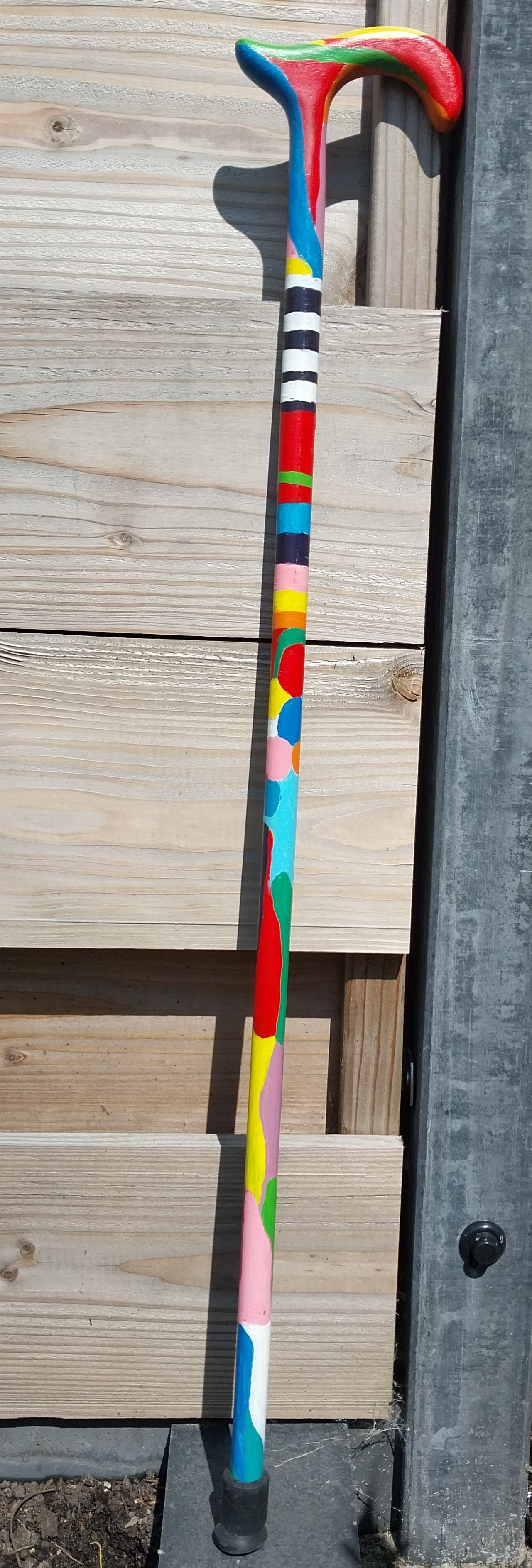 HIPPE WANDELSTOK in kleurtjes acrylverf, afgelakt